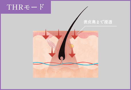 赤外線領域が多い波長を使用することで光の到達点が広く、従来の脱毛方法より確実に成長期の毛にアプ ローチすることができます。